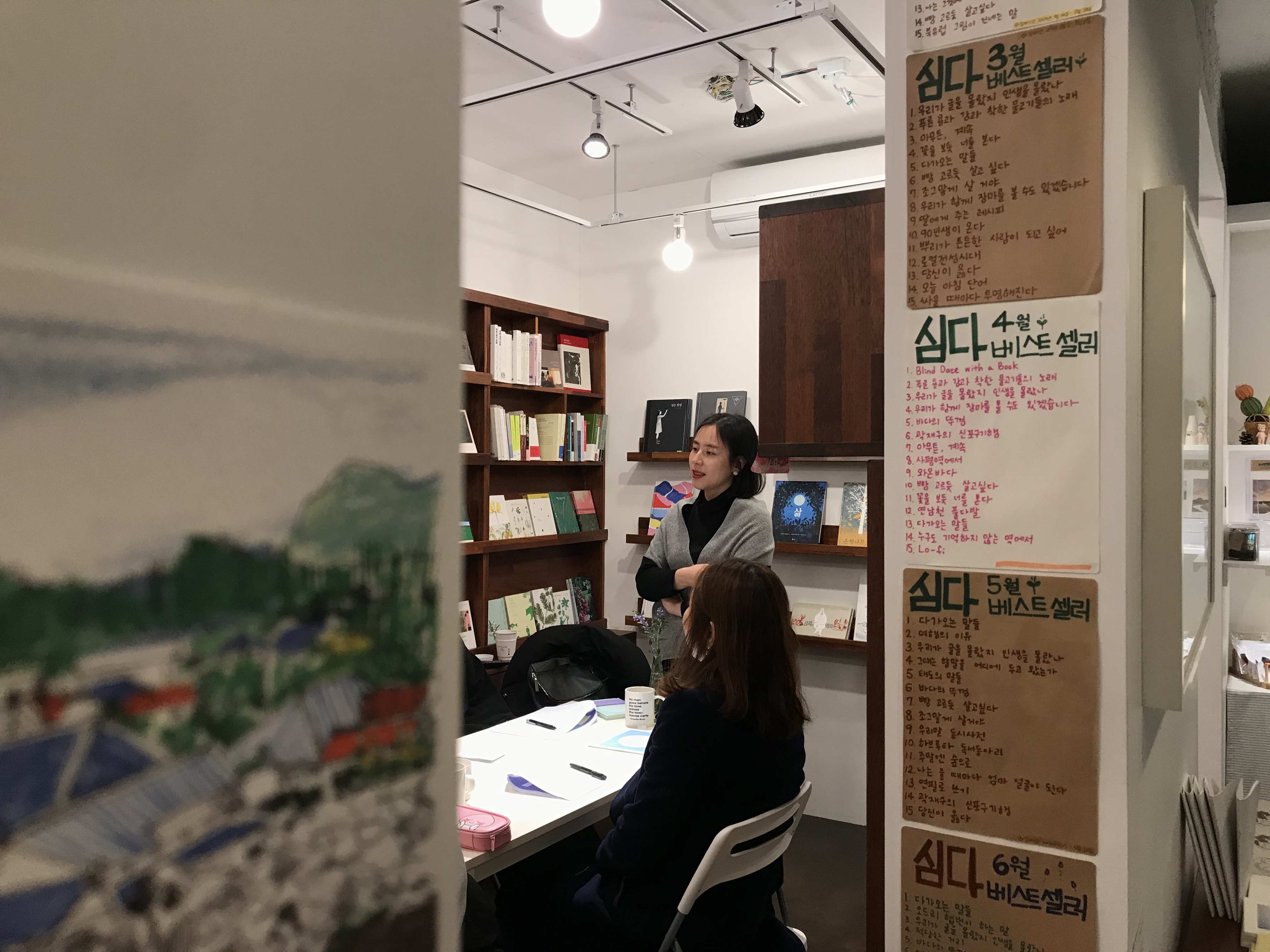 그러나, <책방사춘기>에 도착한 순간 그 공간 고유의 밝음, 따스한 에너지에 반했습니다. 책방 주인선생님의 취향이 가득 배어나는 공간에 몇 분 머물자마자 추위는 잊고서, 그 곳에서 뵙게 된 분들이 한 분 한 분 눈에 들어오기 시작했습니다.