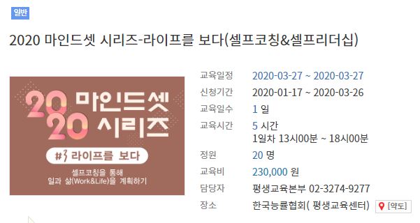 [외부강의] 2020 마인드셋 시리즈-라이프를 보다(셀프코칭&셀프리더십) _ 한국능률협회