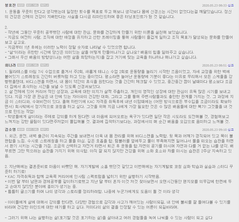 1) 이번 코칭스터디 11차에 참여하게 된 마음(동기)는 무엇인가요? ( 총 19명의 인원이 이번에 참여하게 되어서, 시간관리상 1주차에 늘 하던 체크인-참가동기 시간을 본 댓글에 적어서 공유하는 것으로 대신하겠습니다. ^^)