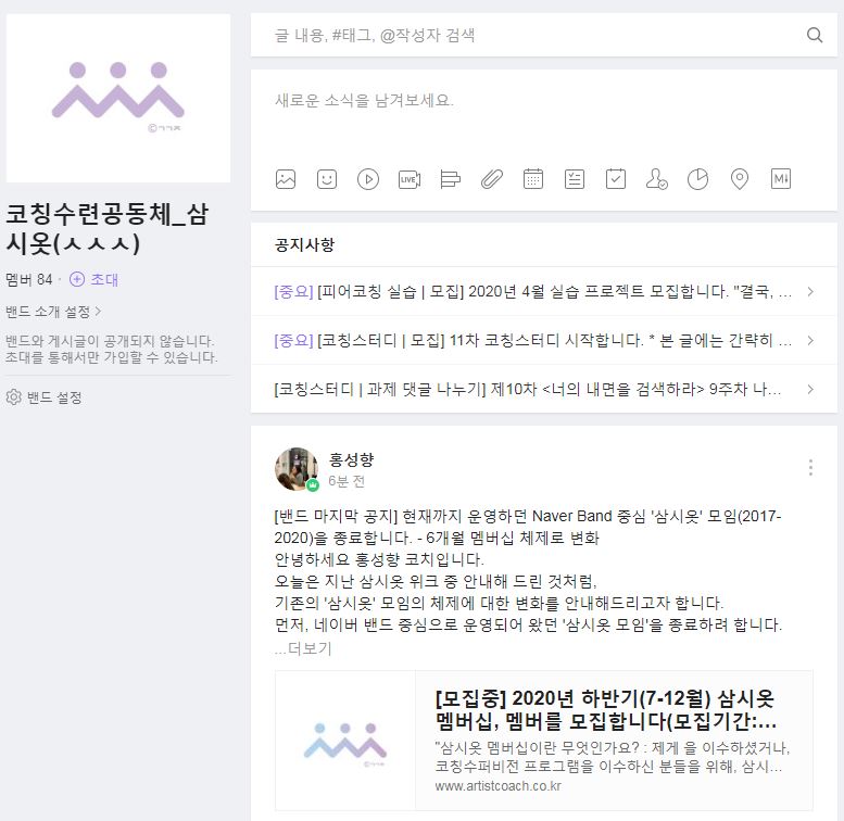 이에 기존의 삼시옷 모임, 네이버 밴드 중심 모임 체제를 오늘로서 종료하고,