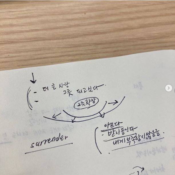 • 그것이 surrender와 어떻게 연결되는가? : 이 아픔을 받아들이는 것. 이런 장면이 찾아온 까닭을 이해하고, 잘 받아들여 영적 성숙을 하는 것. surrender 한다는 것은 곧 내 삶을 내가 설계하지 않는다는 것 같다.