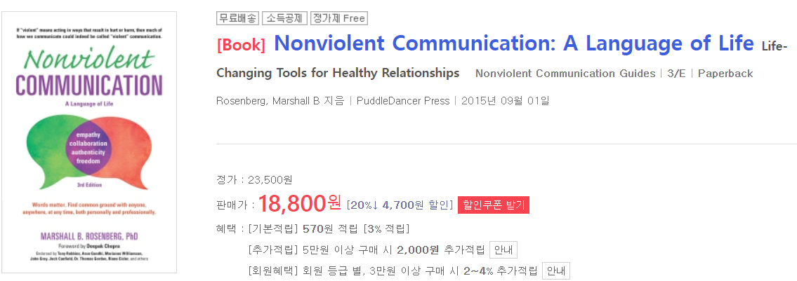 바로바로바로 유명한 책이죠, '비폭력대화' 의 원서인 'Nonviolent communication'입니다.