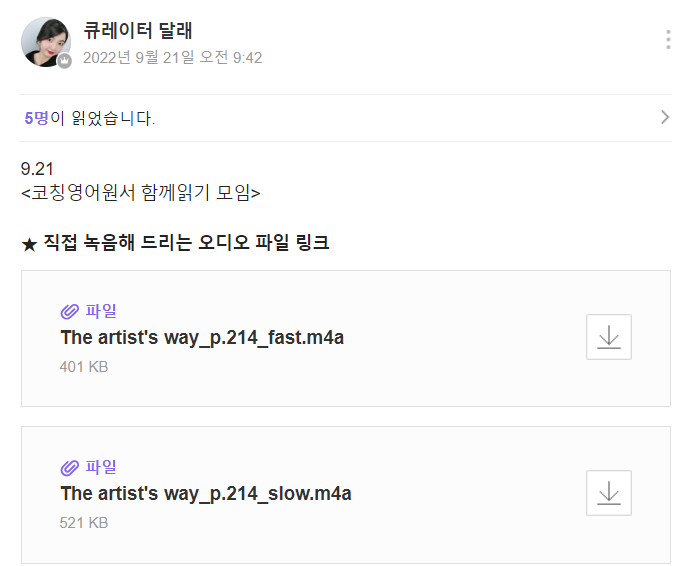 1. [낭독 mp3 주 5일 제공] 월 - 금요일 달래님의 낭독 mp3 제공