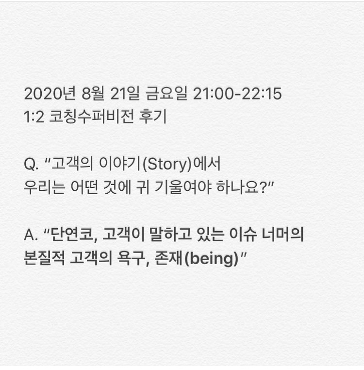 [후기] 1:2 코칭 수퍼비전 후기 (2020-08-21, 21:00-22:15)