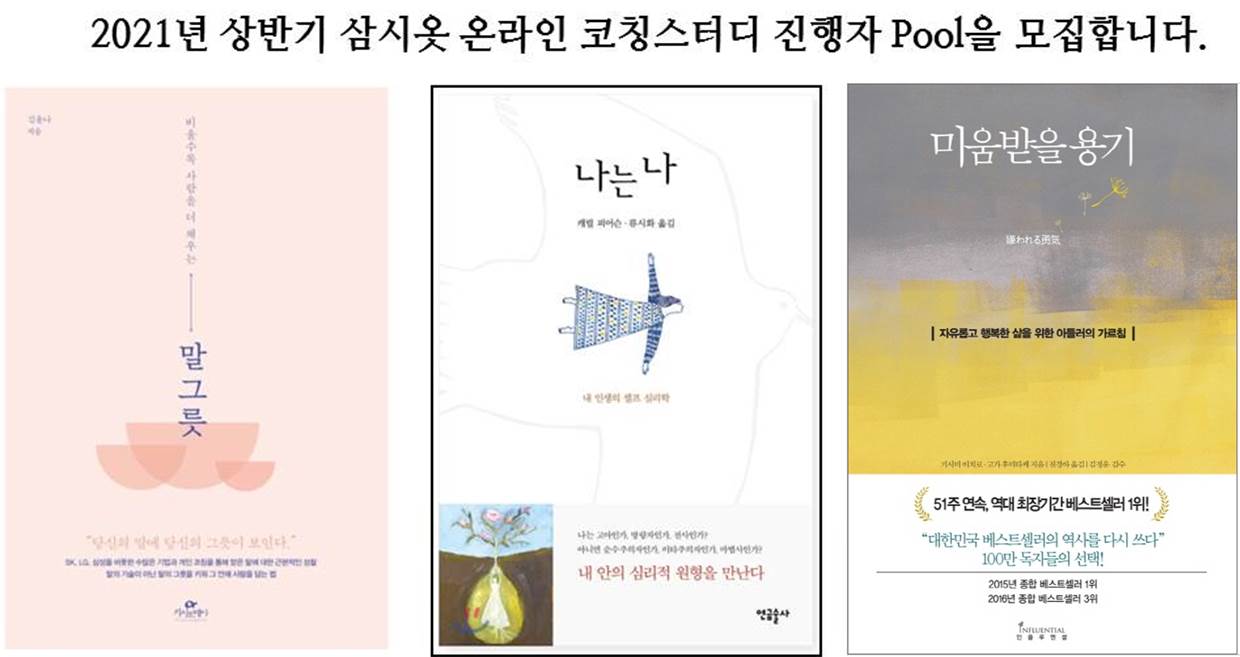 2021 상반기 삼시옷 온라인 코칭스터디에서 다룰 책: <말그릇>, <나는 나>, <미움받을 용기> 등