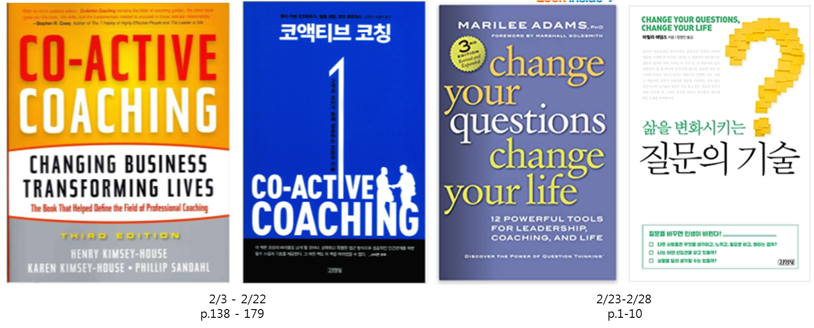 * 2월말 조금 다루고, 3월부터 본격적으로 다루게 될 <change your questions change your life>는, 현재 아마존(11번가)에서 구매 가능하세요.: 링크) http://www.11st.co.kr/products/3872632534/share